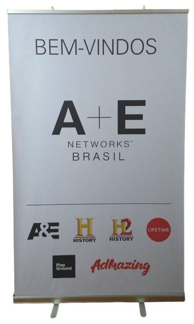 O Porta Banner Roll up é fácil de transportar e muito prático de montar.